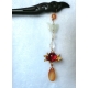 Phoenix feather,gold and red pressed “flower” amber bead, delicate jade butterfly and agate teardrop (love the natural stone veining :3)