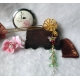 The exquisite golden birdcage has a teeny bird in it representing the confined and lonely life of the lady in the poem who bemoans her faded youth and straying husband. The butterfly is cloisonne and the green glass teardrops represent the willows of the garden while the clear crystal teardrop represents her tears as she tearfully asks the flowers for answers.