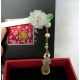 Inspired by Bai Juyi’s famous poem "Pipa Song" 《琵琶行》. The glow-in-the-dark Iceland spar bead represents the autumn moon in the poem.The jade pipa is attached to large and small pearls as well as jade beads symbolizing the famous lines ” 大珠小珠落玉盤” (Large and small pearls fall on a jade plate)