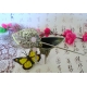 This Chinese Leaf Hair Stick features rose quartz beads and speckled feathers.